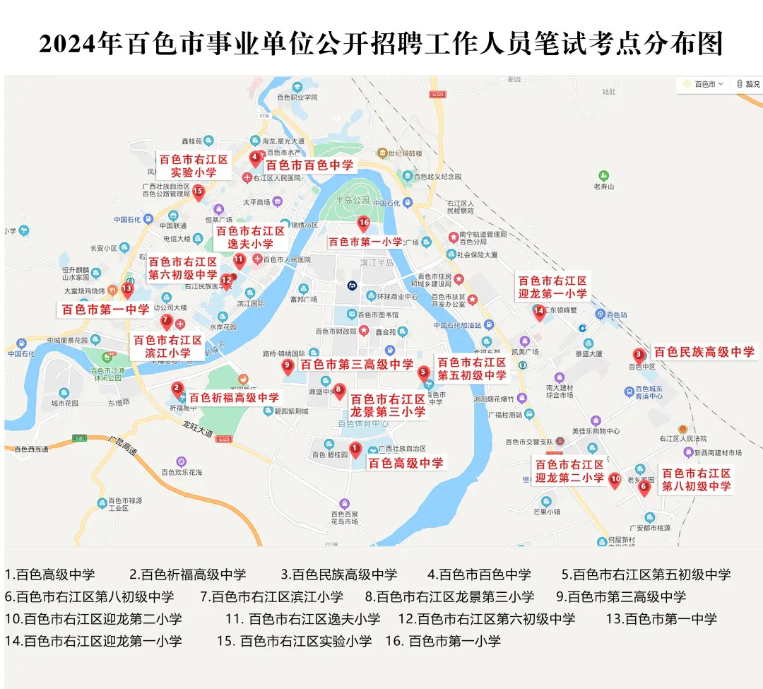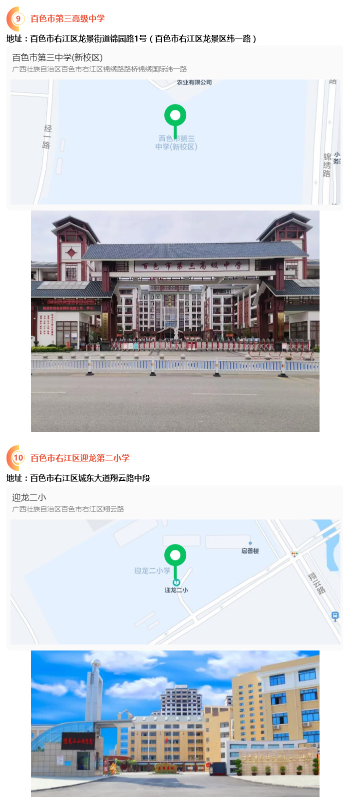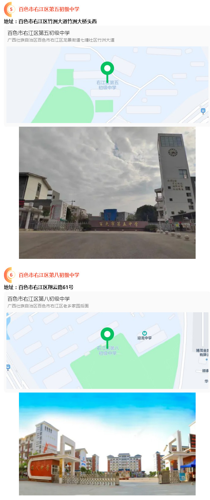 2.請?zhí)崆笆煜た键c地址,做好路線、住宿的安排。本次考試參考人數(shù)較多,考點分布分散,建議考生考前實地察看考點,確認(rèn)考點入口位置,防止走錯考點。請充分考慮考點周邊交通通行情況和停車場地容量,合理安排出行方式,預(yù)留充足時間,確保考試當(dāng)天按時到達。另外,考試期間百色市及各考點學(xué)校周邊的住宿比較緊張,請?zhí)崆邦A(yù)定。