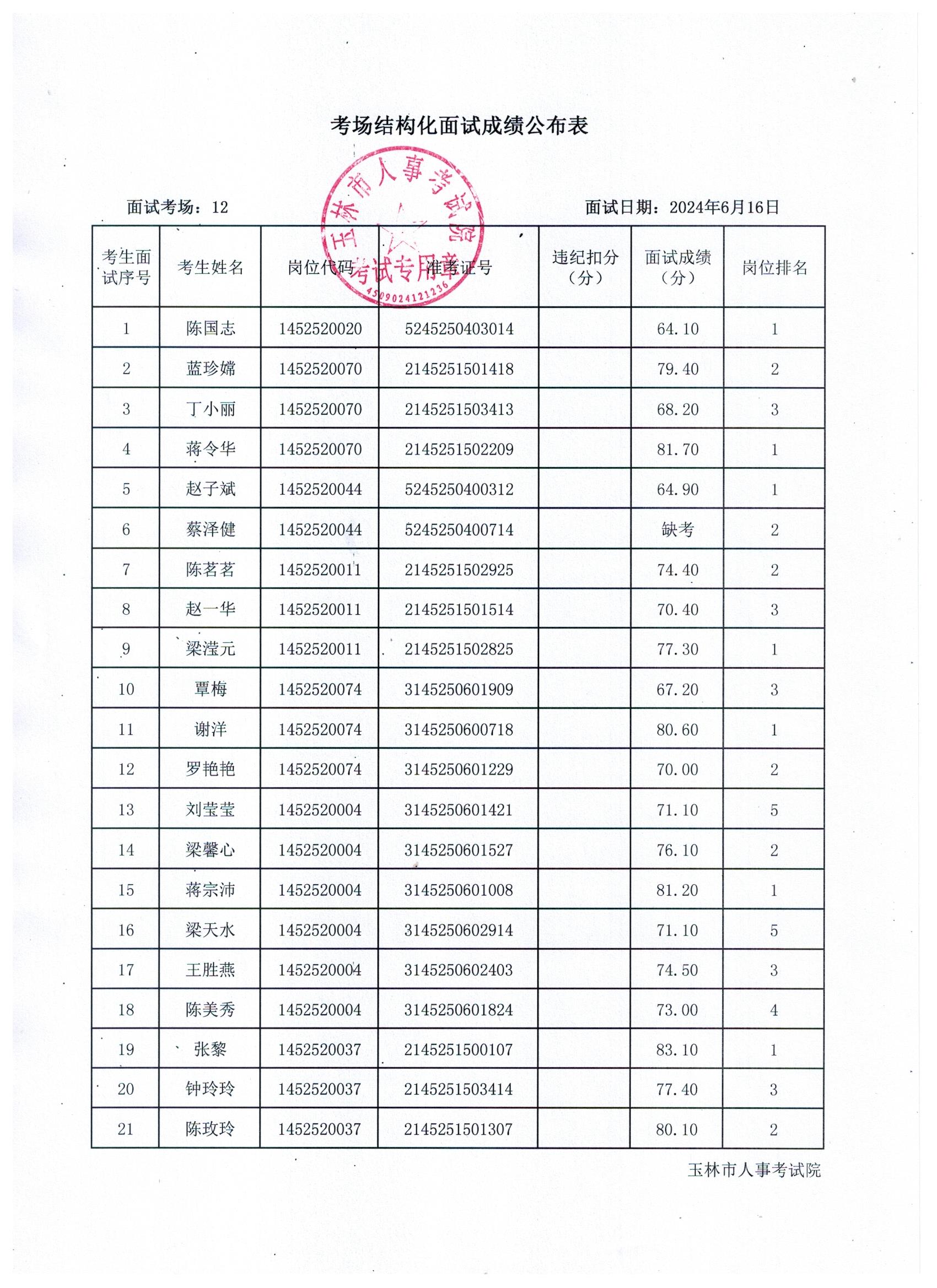 原文標題:2024年玉林市直(含玉州區(qū)、福綿區(qū)、玉東新區(qū))事業(yè)單位公開招聘人員面試成績公布(6月16日)
