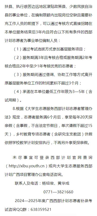 2024—2025年度廣西大學(xué)生志愿服務(wù)西部計劃補(bǔ)錄公告