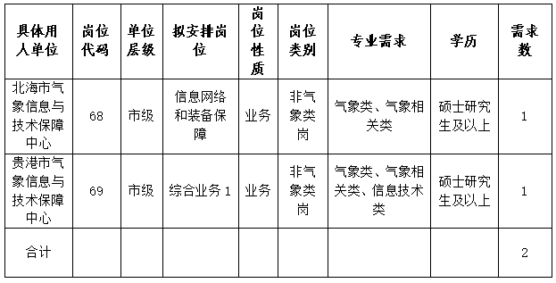根據(jù)《氣象部門事業(yè)單位公開招聘人員管理辦法》《廣西氣象部門2025年度事業(yè)單位公開招聘工作方案》有關(guān)要求,廣西氣象部門增加招聘2025年應(yīng)屆畢業(yè)生筆試崗位(即非氣象類崗位)2個。具體事項(xiàng)公告如下: