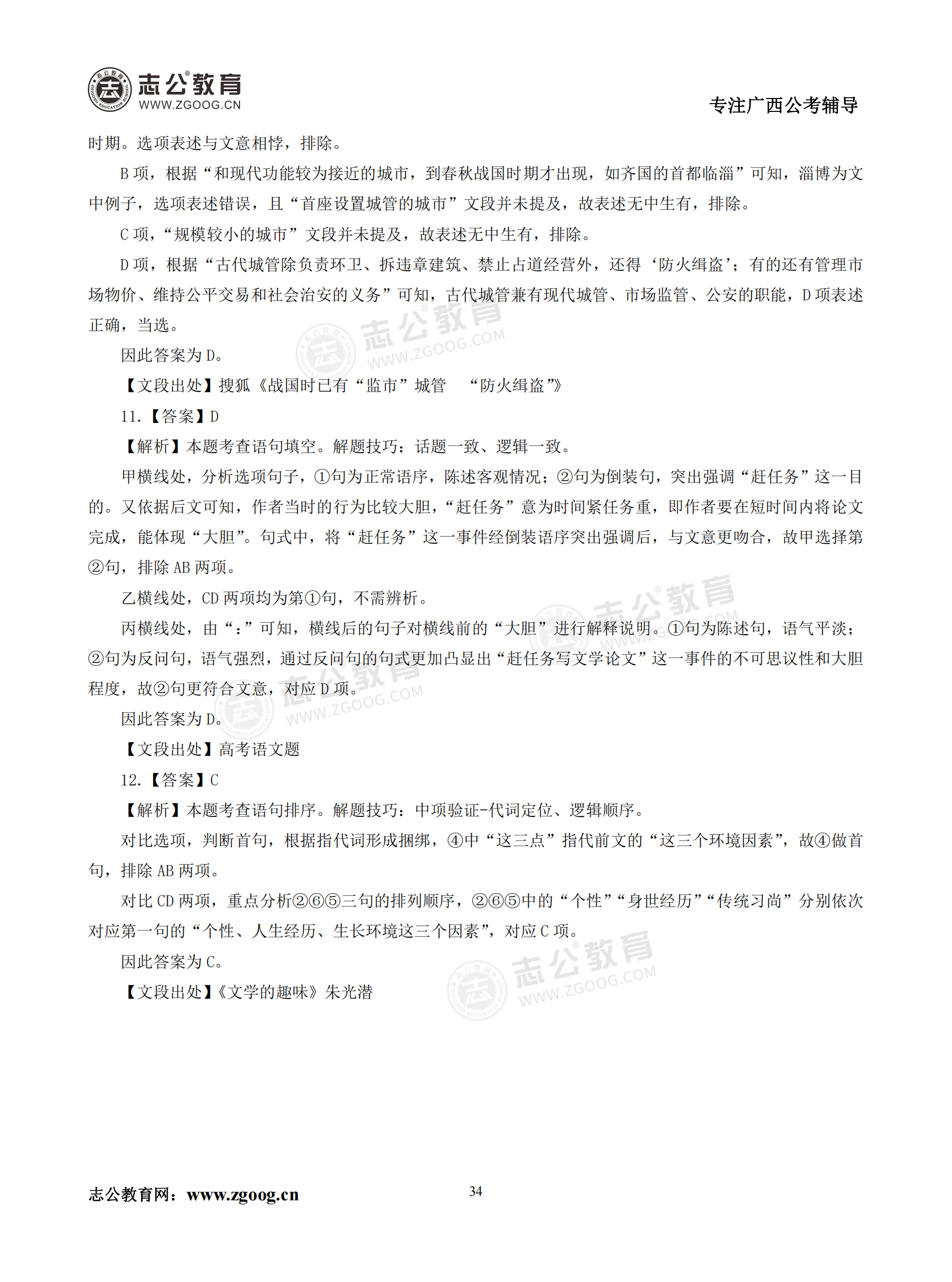 【公考模塊練習】言語理解題三(答案)