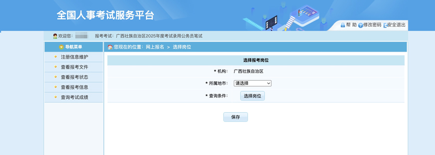 第八步:考生報名選擇報考地市及崗位