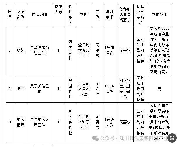 原文標(biāo)題:陸川縣溫泉鎮(zhèn)陸城衛(wèi)生院公開招聘編外醫(yī)務(wù)人員公告