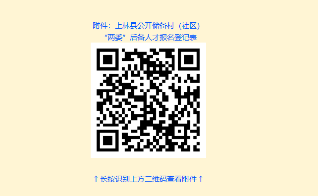 報(bào)名方式一:現(xiàn)場報(bào)名?,F(xiàn)場報(bào)名地點(diǎn)為各鄉(xiāng)鎮(zhèn)黨建辦,現(xiàn)場報(bào)名者須填寫《上林縣公開儲備村(社區(qū))“兩委”后備人才報(bào)名登記表》(詳見附件,以下簡稱《報(bào)名登記表》),并提供本人身份證、學(xué)歷學(xué)位證書、戶口簿原件及復(fù)印件(原件供現(xiàn)場審核;復(fù)印件以供存檔,不退回)各1份,近期小二寸正面免冠照片2張。