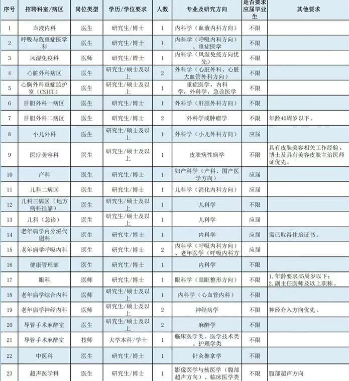 博士崗位:全年長(zhǎng)期招聘(我院將根據(jù)報(bào)名情況分批次安排面試,具體以醫(yī)院通知為準(zhǔn)),崗位招滿即關(guān)閉報(bào)名通道。