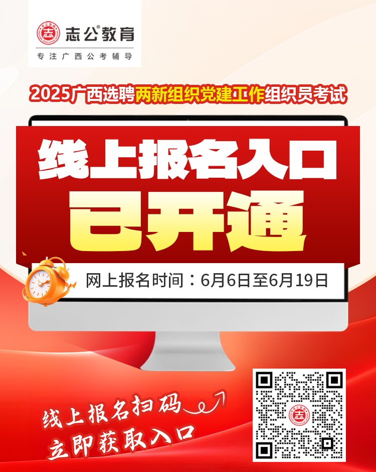 報(bào)名入口開通!2025年廣西壯族自治區(qū)選聘兩新組織黨建工作組織員今起報(bào)名,附免費(fèi)備考資料!