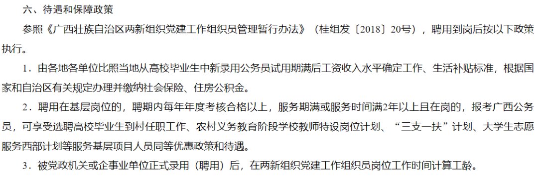 如果是符合條件的黨員朋友可要抓住這次機(jī)會(huì)了??,不僅“由各地各單位比照當(dāng)?shù)貜母咝.厴I(yè)生中新錄用公務(wù)員試用期滿后工資收入水平確定工作、生活補(bǔ)貼標(biāo)準(zhǔn),根據(jù)國家和自治區(qū)有關(guān)規(guī)定辦理并繳納社會(huì)保險(xiǎn)、住房公積金。”服務(wù)期滿還參照三支一扶等服務(wù)基層項(xiàng)目人員同等優(yōu)惠政策和待遇,而且!這個(gè)考試只用筆試,不用面試,香,實(shí)在是太香了!