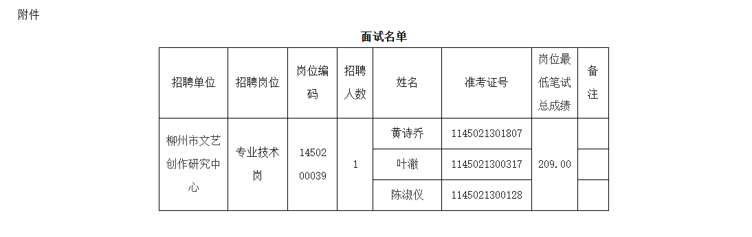 (一)面試名單附后