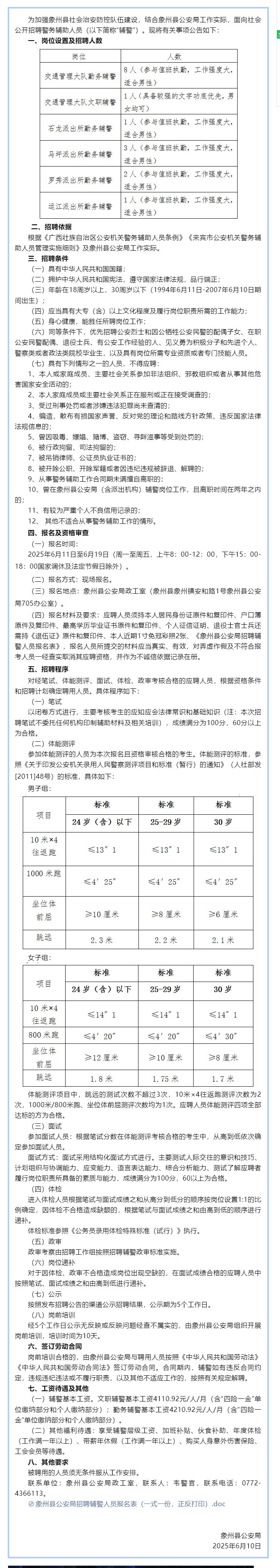 象州縣公安局招聘輔警16名
