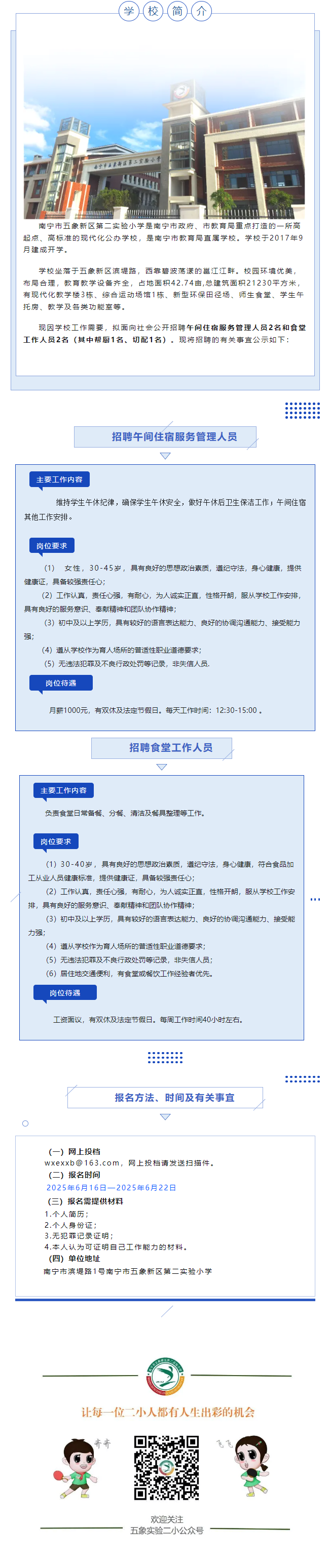 南寧市五象新區(qū)第二實驗小學(xué)招聘公告