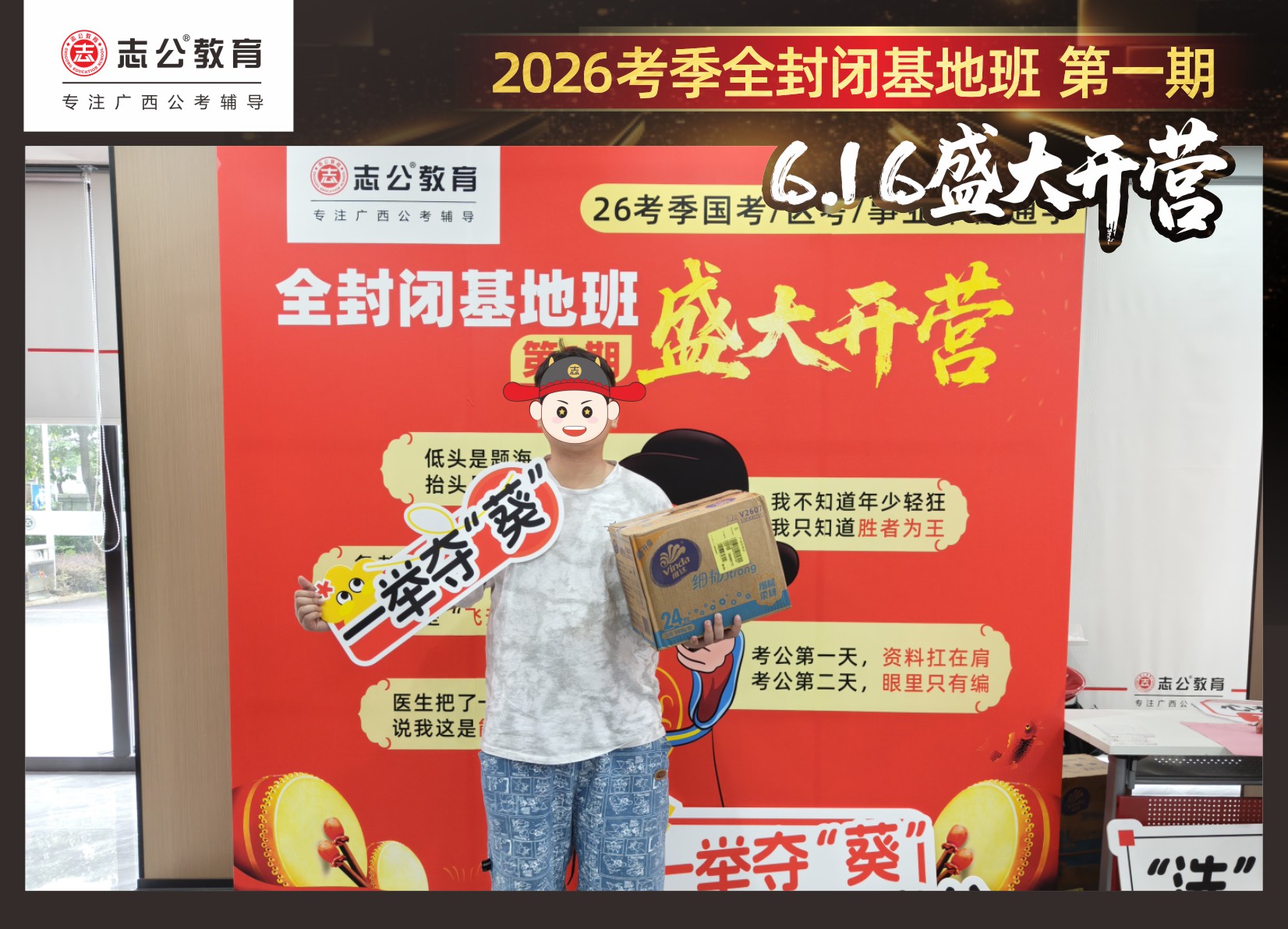 開班還有一些小活動哦~前5名到場簽名入營的學員,還獲得了實用生活禮包1份,這大大的一箱抽紙寓意咱們志公學員未來“紙定成公”!