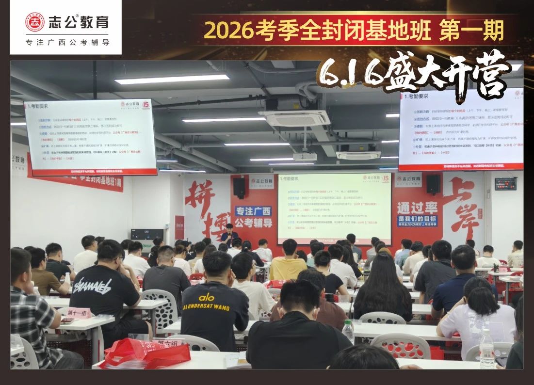 最后,要進行的是摸底考試,志公教育26考季全封閉基地班第1期確實火爆,但是要知道廣西公考每年競爭對手更多人,只有通過考試才能知道自己在這么多學員中的水平情況,入營時的最初水平,更能知道自己在接下來的學習中是否有進步!