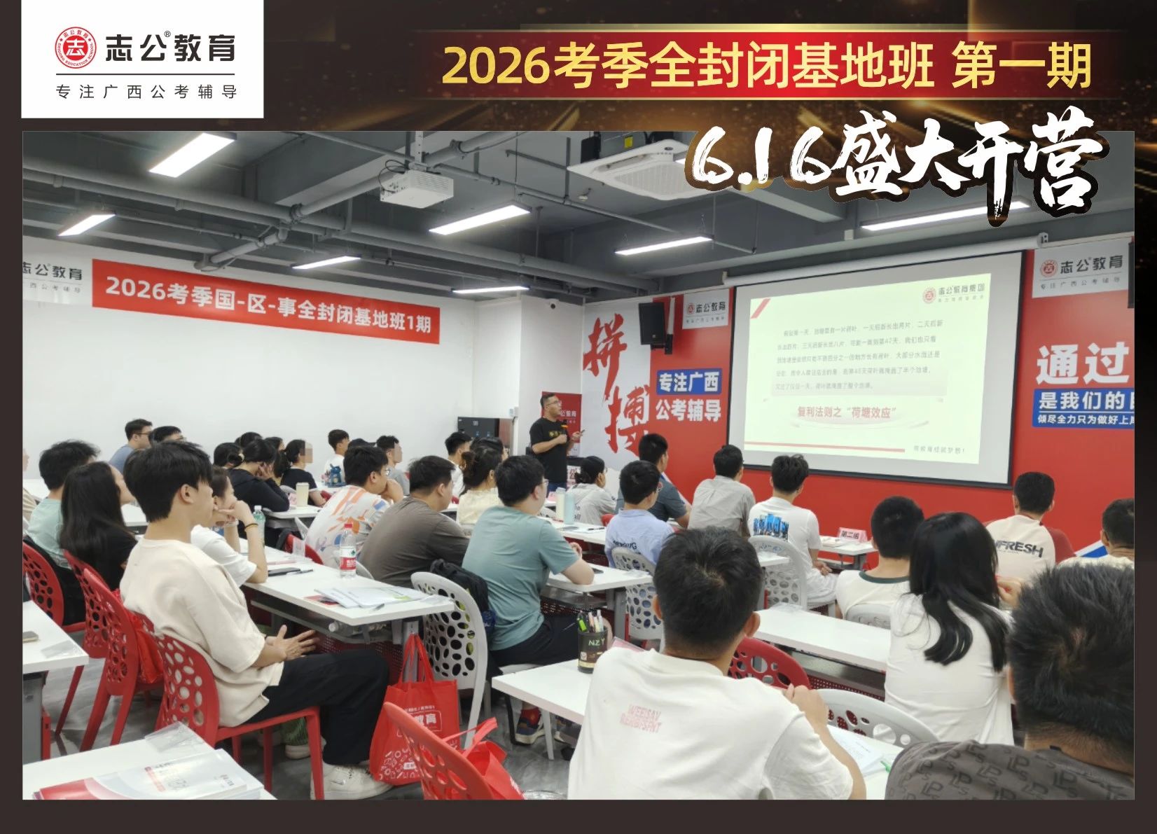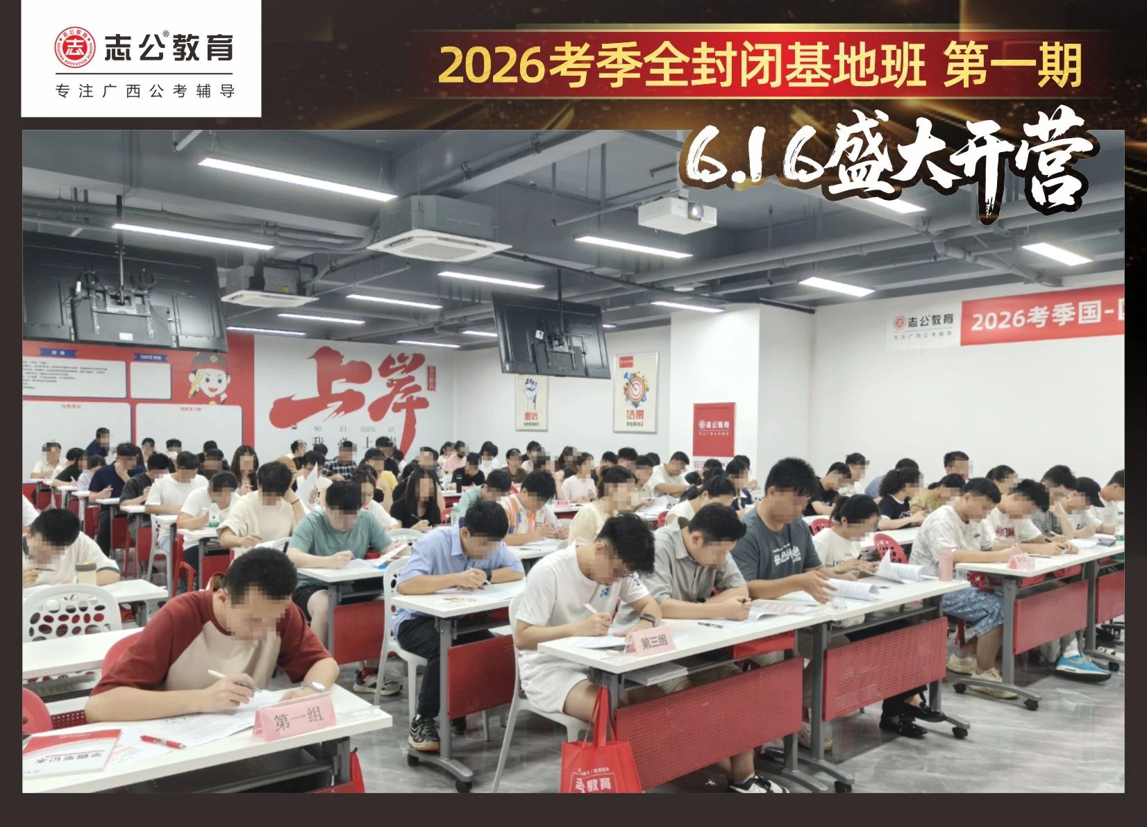 大家稍作休息之后,就是咱們期待已久的開班典禮啦!學員們在班主任的引導下分組就坐。大家目光灼灼,熱情高漲,迫不及待想要開啟學習模式??催@座無虛席的盛況,志公26考季全封閉基地班第1期課程實力名不虛傳,各位學員用飽滿的熱情和積極的態(tài)度迎接此次課程的開展,期待大家能夠完成自己的蛻變和成長!