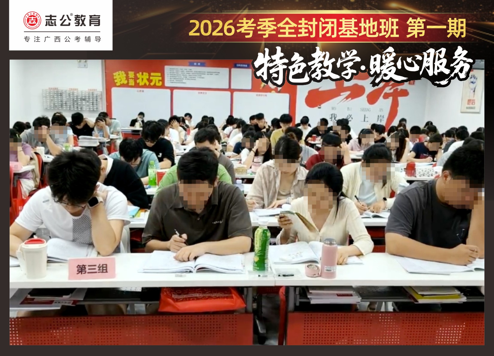 近日,志公教育基地班正式開課后,學(xué)員們?nèi)孢M(jìn)入緊張而有序的封閉式備考狀態(tài)。為確保每一位學(xué)員都能在最佳狀態(tài)下高效備考,志公教育不僅提供了優(yōu)質(zhì)的教學(xué)資源和師資團(tuán)隊(duì),更從住宿環(huán)境、飲食健康、學(xué)習(xí)空間、紀(jì)律監(jiān)管、心理關(guān)懷、激勵機(jī)制等多個維度出發(fā),精心打造了一系列保障措施,確保每一位學(xué)員都能在最佳狀態(tài)下備考,真正實(shí)現(xiàn)“學(xué)得安心、住得舒心、吃得放心”。