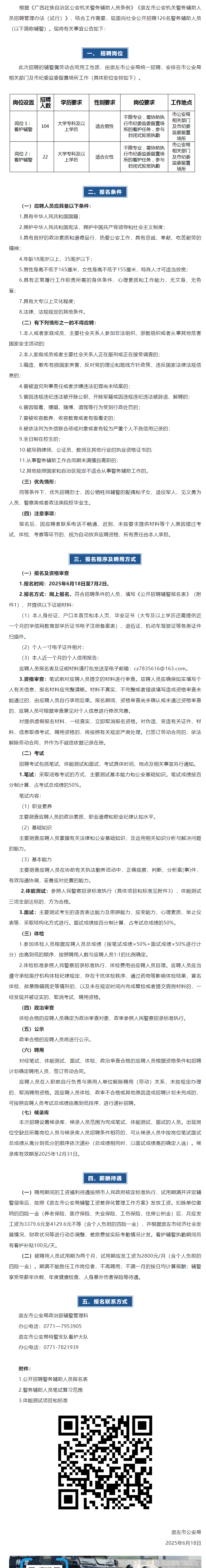 原文標題:崇左市公安局警務輔助人員招聘公告