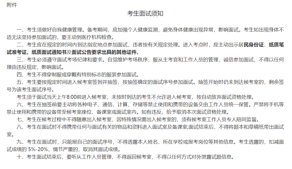 (一)考生領(lǐng)取面試通知書后,應(yīng)熟讀《考生面試須知》(詳見附件)。