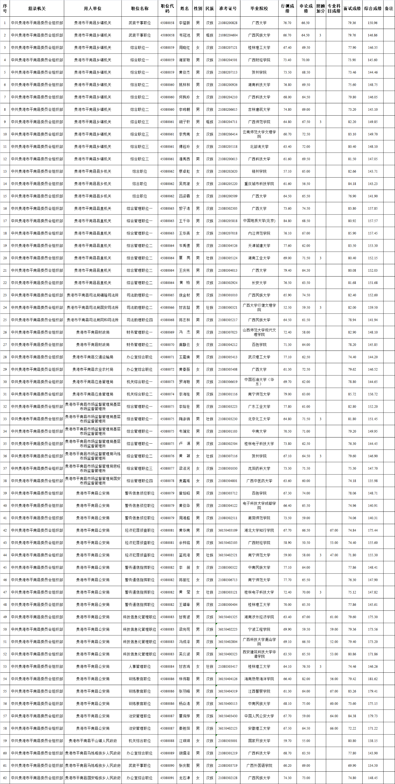 6.6 貴港市人力資源和社會保障局2025年度考試錄用公務(wù)員擬錄用人員名單