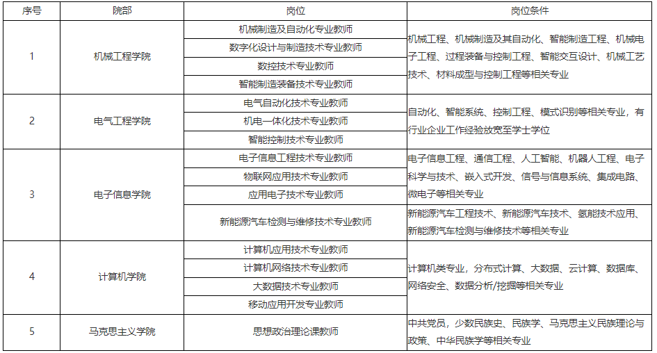4.專任教師崗具有碩士及以上學位;具有高校教學經(jīng)驗、中級以上專業(yè)技術(shù)職務(wù)或行業(yè)企業(yè)工作經(jīng)驗,條件可放寬至學士學位;