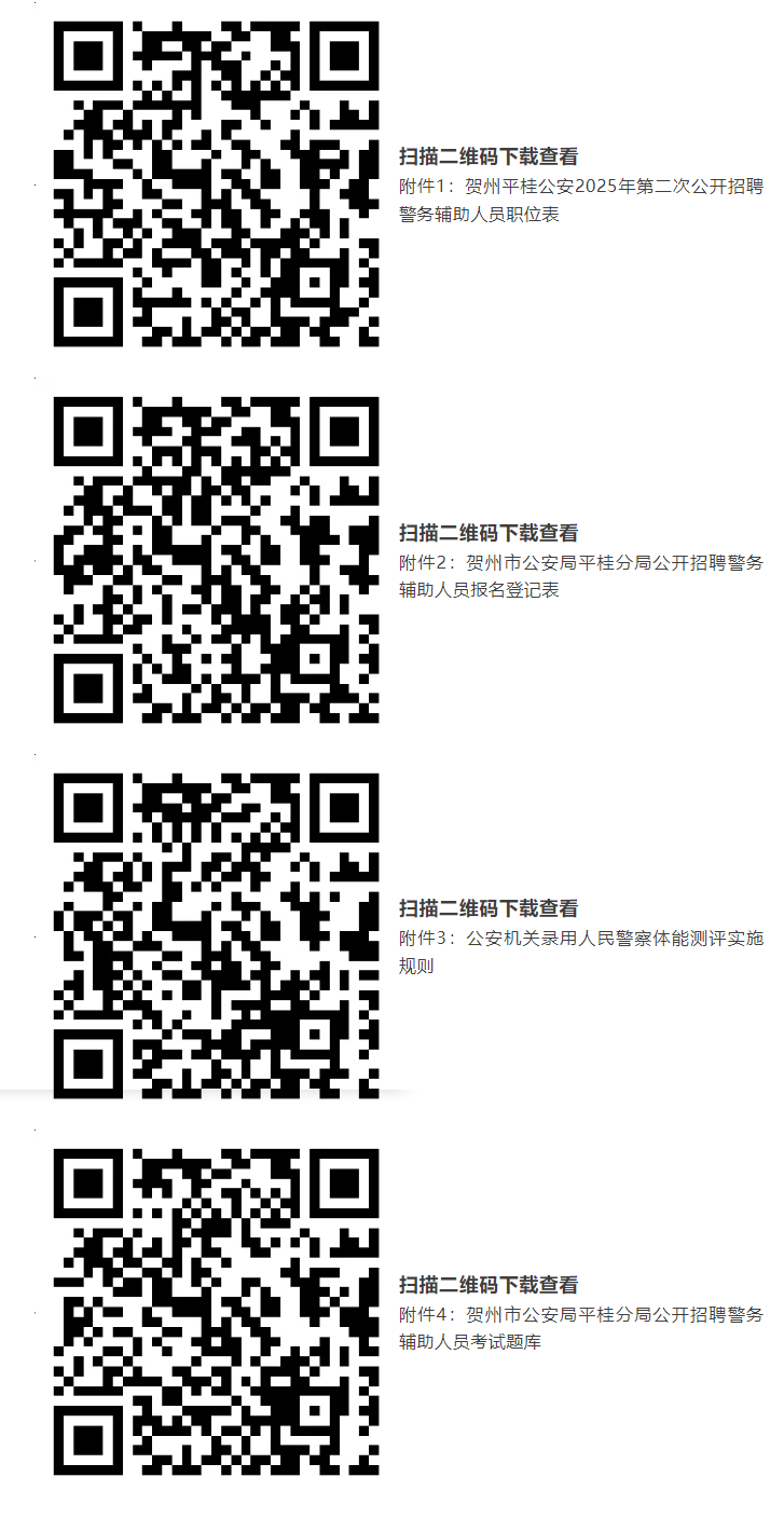 報考人員自2025年7月21日起,可通過賀州市公共就業(yè)和人才服務中心“賀州市微就業(yè)”官方微信(gxhzjy)、賀州市公安局平桂分局“平桂警方”官方微信(pggafj)查閱招聘簡章及《職位計劃表》(附件1)等相關招聘信息。