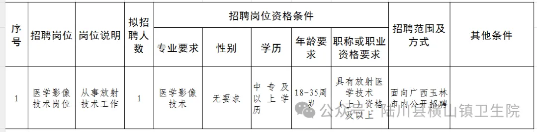 報(bào)名地點(diǎn):陸川縣橫山鎮(zhèn)衛(wèi)生院四樓院辦公室。(咨詢(xún)電話(huà):0775-7125668)。