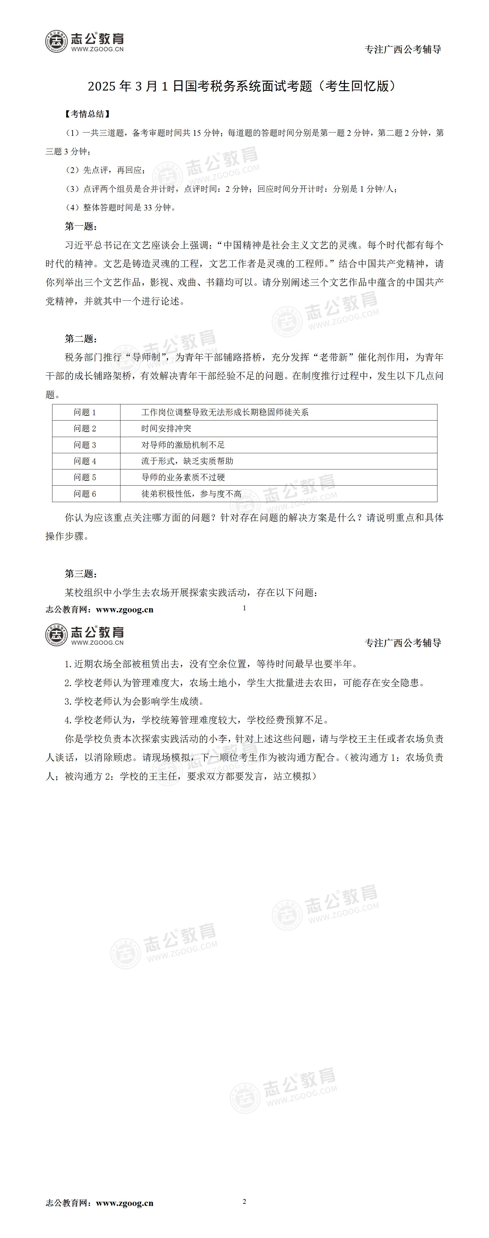 2025年國(guó)考稅務(wù)系統(tǒng)3月1日面試考題(考生回憶版)
