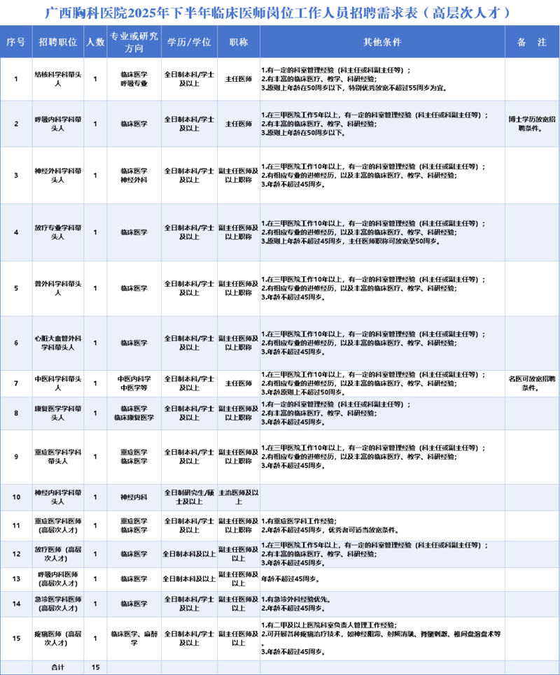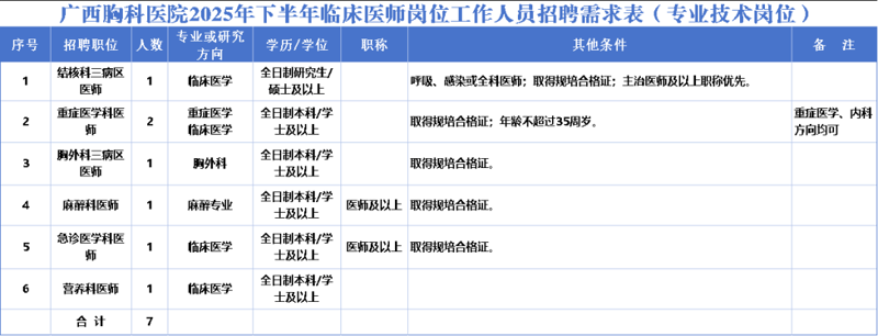 ▲附件1:廣西胸科醫(yī)院2025年下半年臨床醫(yī)師崗位工作人員招聘報(bào)名表。(掃一掃二維碼下載表格)