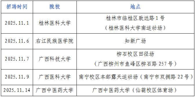 三、廣西各醫(yī)學(xué)院校雙選會舉辦時(shí)間、地點(diǎn)