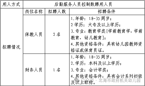 符合條件的應(yīng)聘人員請(qǐng)于2025年11月4日至11月10日期間進(jìn)行報(bào)名,由本人填寫《北海市政府機(jī)關(guān)幼兒園后勤人員控制數(shù)工作人員報(bào)名登記表》(見附件),連同身份證、畢業(yè)證書及崗位要求的資格證等掃描件發(fā)送至郵箱bhszfjy@163.com,逾期不予受理。