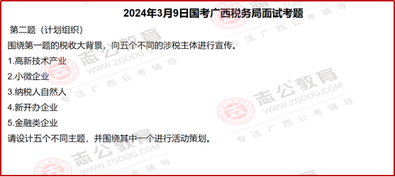 國(guó)考面試?yán)?,稅?wù)系統(tǒng)的題目一直有個(gè)很明顯的特點(diǎn),就是緊跟國(guó)家政策、貼近實(shí)際工作。尤其是2024年廣西稅務(wù)局的面試題,把這個(gè)特點(diǎn)體現(xiàn)得特別透徹??催@些題目,既能知道稅務(wù)工作實(shí)際需要什么樣的人、做什么樣的事,也能清楚面試到底要考察我們哪些核心能力。今天小志就帶大家了解一下,國(guó)考中稅務(wù)系統(tǒng)面試一些相關(guān)信息解讀: