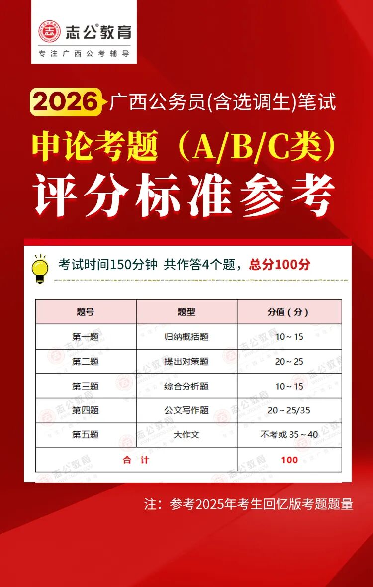 廣西考生須看!2026年廣西區(qū)考、事業(yè)單位聯(lián)考筆試評分標準!