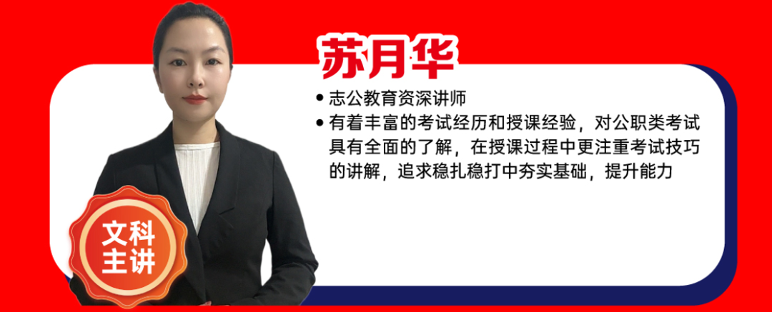 ?有著豐富的考試經(jīng)歷和授課經(jīng)驗,對公職類考試具有全面的了解,在授課過程中更注重考試技巧的講解,追求穩(wěn)扎穩(wěn)打中夯實基礎,提升能力。